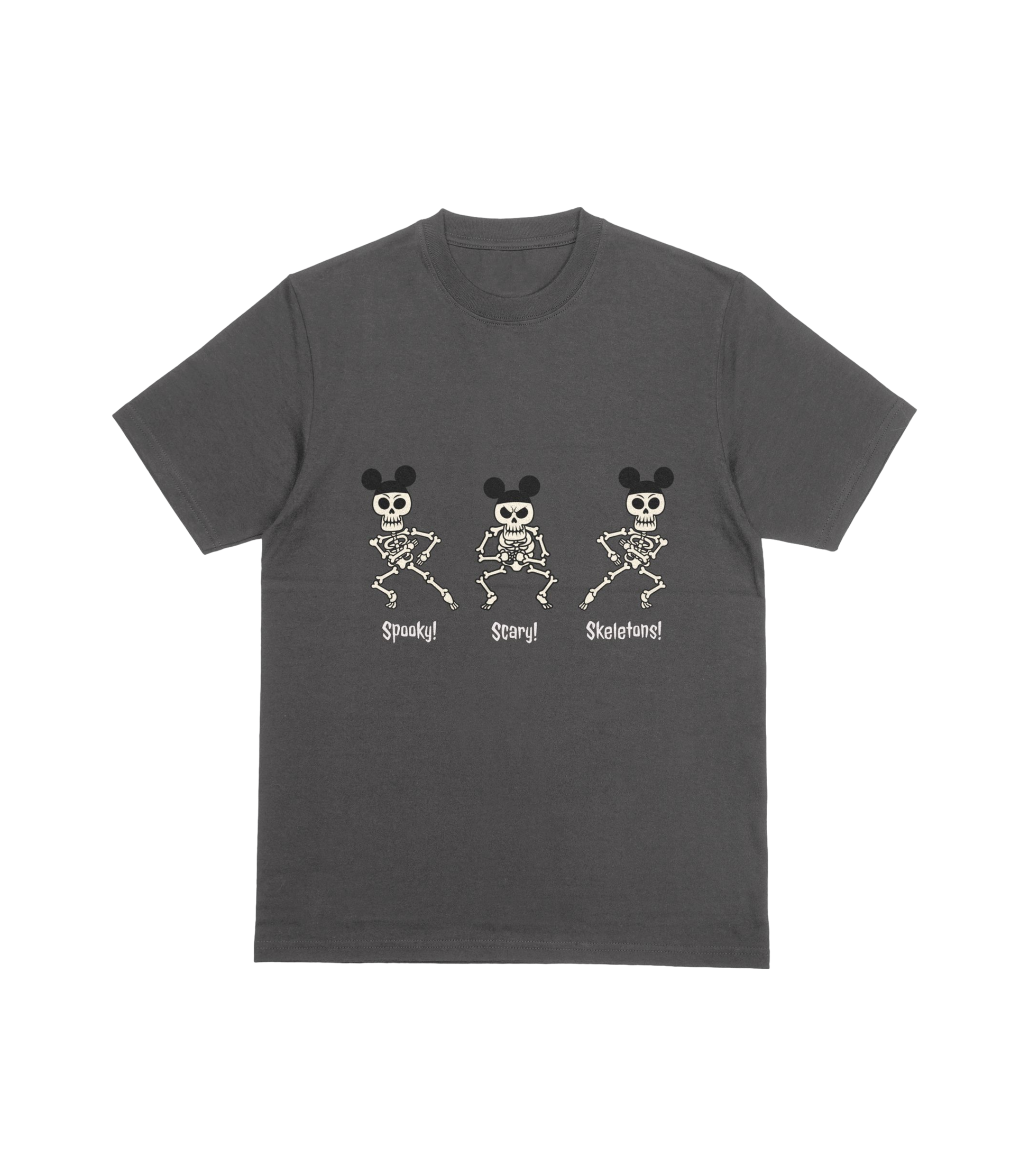 A bone-rattling favorite is back from the grave! Our Spooky Scary Skeletons Tee brings the haunting vibes with three dancing skeletons topped with iconic mouse ears and the phrase we all know and love. Flip it around and you’ll find “Send shivers down your spine!” printed down the back—just in case the front didn’t already do the trick.
